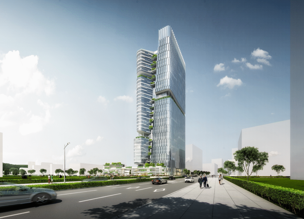 The tower’s design reinterprets the relationship between rock and vegetation, integrating lush green terraces, cascading balconies, and rooftop gardens that blend with the surrounding hills. This connection to nature reinforces the building’s identity as a symbol of balance between natural beauty and human ingenuity.