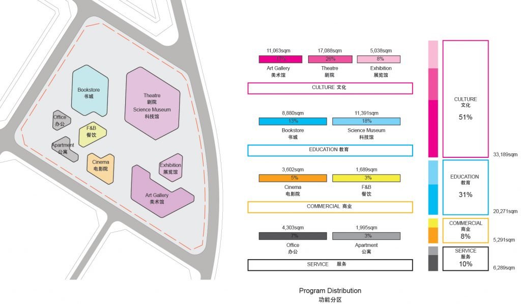 - The second level introduces a network of elevated walkways leading to the art exhibition halls and performance spaces, connecting cultural facilities through a dynamic elevated promenade.
