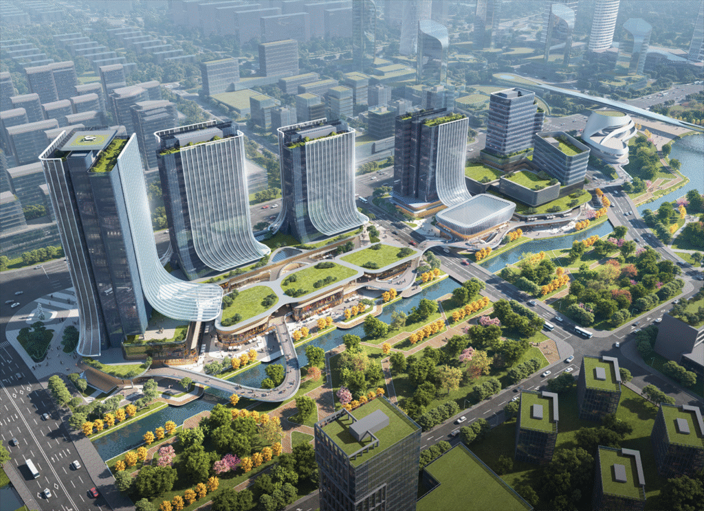 The design concept, called “Innovation Bridge,” reflects Taizhou’s long cultural connection to rivers, canals, and the artistry of traditional bridges. The project also draws inspiration from the striking vertical peaks found in classical Chinese landscape paintings. These references combine to create a design language that is both rooted in heritage and oriented toward the future.