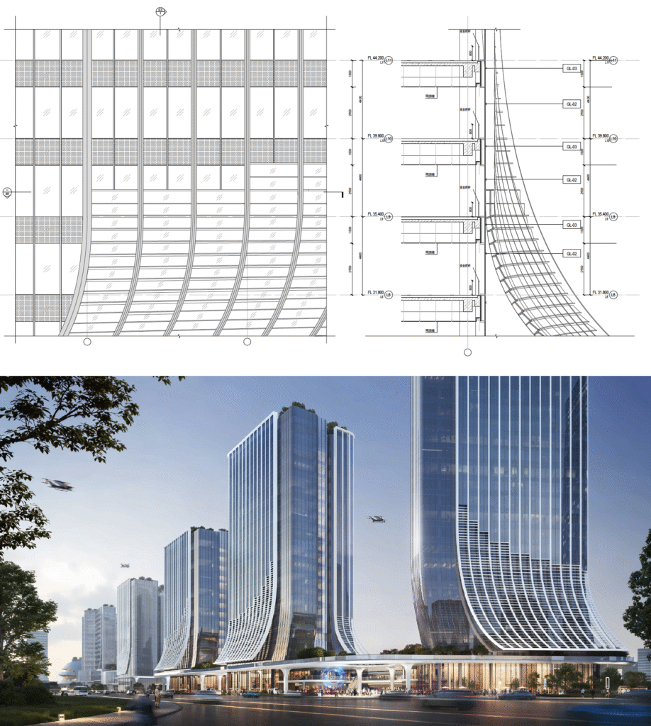This architectural expression gives the district a unified identity, blending natural inspiration with an urban sensibility.