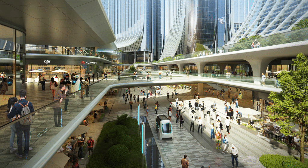 - Plot 2 – Bridge Core: Smart offices and community-oriented commercial spaces.